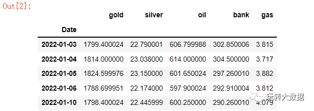 一、数据获取数据获取范围为2022年一月一日到2022年2月25日,获取的数据为俄罗斯黄金,白银,石油,银行,天然气: