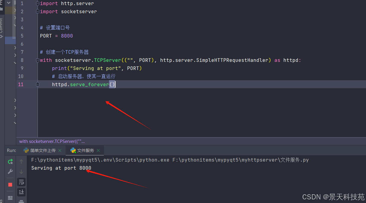 执行后,你将在控制台看到“Serving at port 8000”的提示,表示服务器已成功启动。