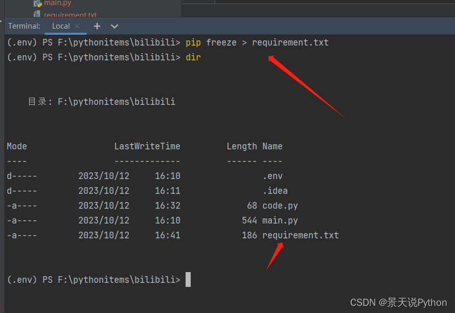 5.导出安装依赖文件项目做完后,如果想把当前项目中所有的包导出来,可以使用在终端命令行