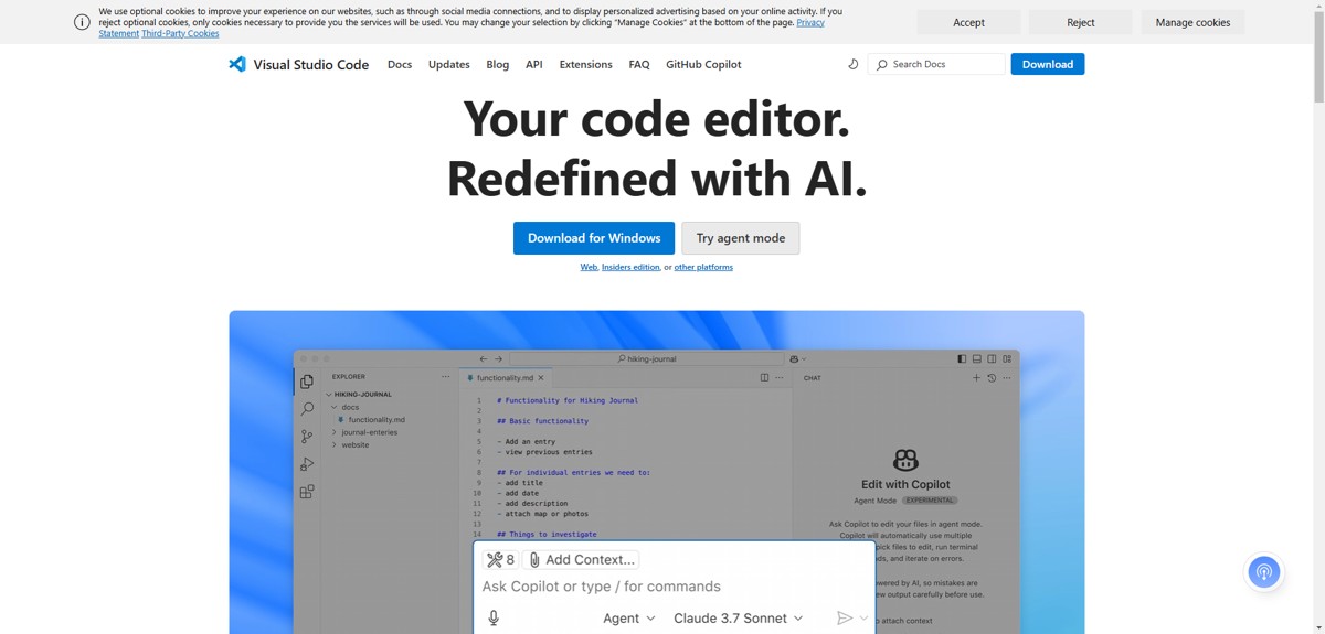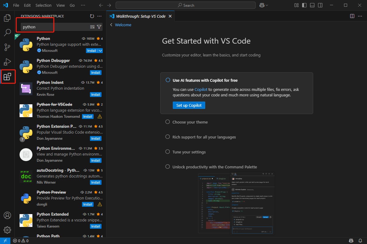 激活成功后,会发现命令提示符前面的路径变为 “(python37) C:\Users\ 用户名 >”,这表示已经成功进入到 “python37” 虚拟环境中。 三、安装 VSCodeVSCode 是一款轻量级但功能强大的代码编辑器,对 Python 开发有很好的支持。 (一)下载 VSCode打开浏览器,访问VSCode 官方下载页面 。 (二)安装 VSCode找到下载完成的 VSCode 安装程序,通常文件名类似于VSCodeUserSetup-x64-xxxx.xx.xx.exe,按照默认download下载的文件"VSCodeUserSetup-x64-1.99.2.exe",双击运行它。 在 “Select Destination Location” 页面,可以选择 VSCode 的安装路径,建议使用默认路径,也可点击 “Browse” 自定义路径,选择完成后点击 “Next”。 在 “Select Start Menu Folder” 页面,保持默认设置,直接点击 “Next”。 在 “Select Additional Tasks” 页面,建议勾选 “Create a desktop shortcut”(创建桌面快捷方式),方便后续快速启动 VSCode,其他选项可保持默认,然后点击 “Next”。 在 “Ready to Install” 页面,确认安装信息无误后,点击 “Install” 开始安装。安装完成后,点击 “Finish”。 四、在 VSCode 中配置 Python 环境(一)安装 Python 扩展打开 VSCode。 点击左侧边栏的扩展图标(四个方块的图标),打开扩展市场。 在扩展市场的搜索框中输入 “Python”,在搜索结果中找到 “Python” 扩展,点击 “Install” 进行安装。安装完成后,点击 “Reload”(如果有提示),使扩展生效。 (二)选择 Python 解释器按下Ctrl + Shift + P组合键(Windows/Linux)或Cmd + Shift + P组合键(Mac),打开命令面板。 在命令面板中输入 “Python: Select Interpreter”,然后在弹出的下拉列表中,选择之前创建的 Anaconda 环境 “python37” 中的 Python 解释器。通常路径类似于C:\Users\用户名\Anaconda3\envs\myenv\python.exe 。