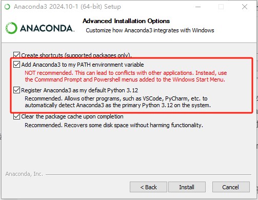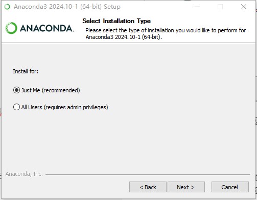 一般情况下,建议下载 Python 3.x 版本的 Anaconda 安装包,并且选择最新版,因为新版本通常会带来更多的功能优化以及安全补丁。 (二)安装 Anaconda找到下载完成的 Anaconda 安装程序,通常文件名类似于Anaconda3-xxxx.xx-Windows-x86_64.exe,按照默认download下载的文件"Anaconda3-2024.10-1-Windows-x86_64.exe",双击运行它。 安装程序启动后,首先会弹出一个欢迎界面,点击 “Next” 按钮继续。 接下来是许可协议页面,仔细阅读协议内容,如果无异议,勾选 “I Agree” 选项,然后点击 “Next”。 在 “Choose Install for” 步骤中,如果是个人使用,推荐选择 “Just Me”,这样 Anaconda 将仅安装在当前用户账户下。选择完毕后,点击 “Next”。 在 “Choose Install Location” 页面,可以选择 Anaconda 的安装路径。建议使用默认路径C:\Users\用户名\Anaconda3,这样可以避免一些潜在的权限和路径问题。若想自定义安装路径,点击 “Browse” 进行选择后,再点击 “Next”。 这一步非常关键,在 “Advanced Installation Options” 中,务必勾选 “Add Anaconda to my PATH environment variable”(将 Anaconda 添加到系统环境变量)以及 “Register Anaconda as my default Python”(将 Anaconda 注册为默认的 Python)。勾选这两项后,点击 “Install” 开始安装。安装过程可能需要一些时间,请耐心等待。 安装完成后,会出现一个提示页面,点击 “Next”,再点击 “Finish”,完成 Anaconda 的安装。 (三)验证 Anaconda 安装按Win + R组合键,打开运行窗口,输入 “cmd” 并回车,打开命令提示符。或者,打开Anaconda下安装的Anaconda Prompt。 在命令提示符中输入 “conda --version”,如果显示类似 “conda xxxx.xx.xx” 的版本号信息,则说明 Anaconda 安装成功。 二、创建并激活 Anaconda 环境为了更好地管理不同项目的 Python 依赖,我们通常会创建独立的虚拟环境。 (一)创建新的 Anaconda 环境打开 Anaconda Prompt(可以通过在开始菜单中搜索 “Anaconda Prompt” 找到它)。 在 Anaconda Prompt 中输入以下命令来创建一个名为 “python37” 的 Python 3.7 环境: