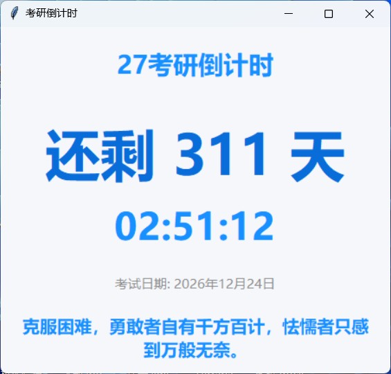 TARGET_DATE = datetime(2026, 12, 24, 0, 0, 0) # 考研日期(当天0点)