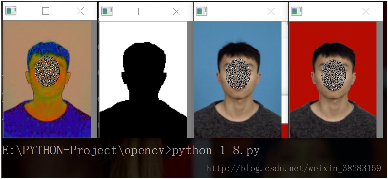 功能:给证件照更换背景色(常用背景色红、白、蓝)