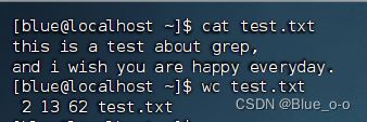 如上,test.txt文件的大小有62个字节,即test.txt文件内有62个字节数。验证正确。 -c,统计字节数