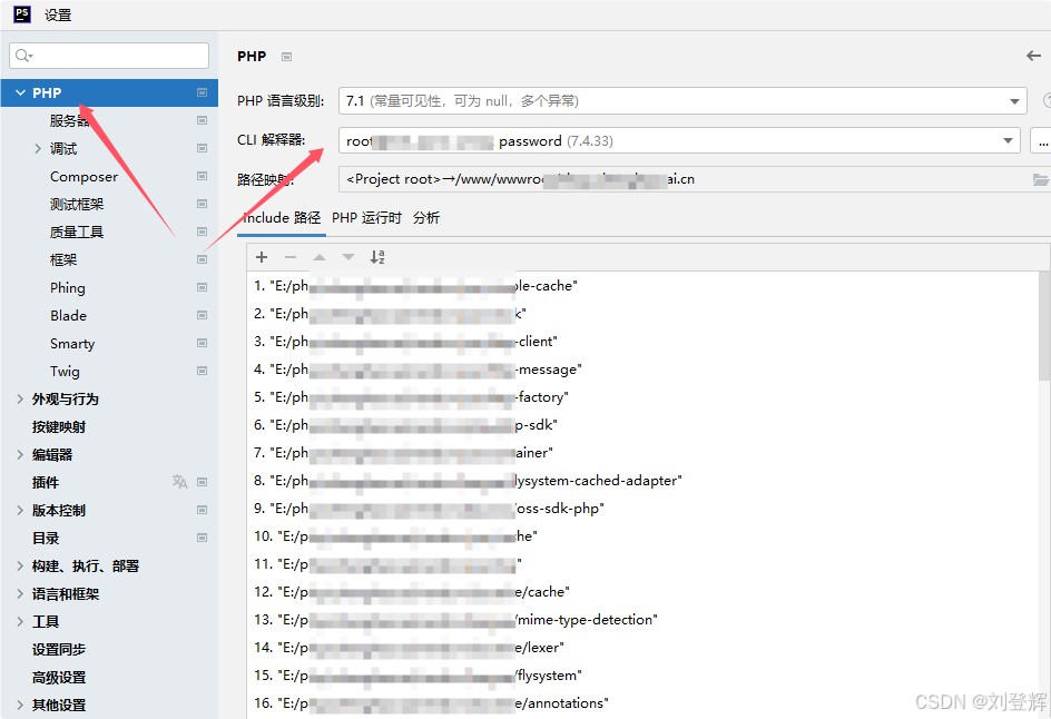2.设置php的CLI解释器,用服务上的信息在 PHPStorm 的 PHP 设置中,添加远程 CLI 解释器。选择从 Docker、Vagrant 等配置,但实际上要选择远程服务器。配置 SSH 连接信息,使用与部署相同的认证方式。设置完成后,PHPStorm 会获取服务器上的 PHP 版本信息和配置路径,确保这里显示的 PHP 版本与服务器实际版本一致。