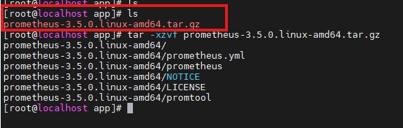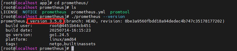 进入解压好并且改过名的prometheus目录下,查看它的版本。返回版本号代表安装成功!