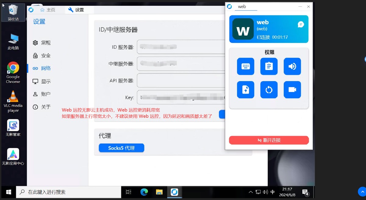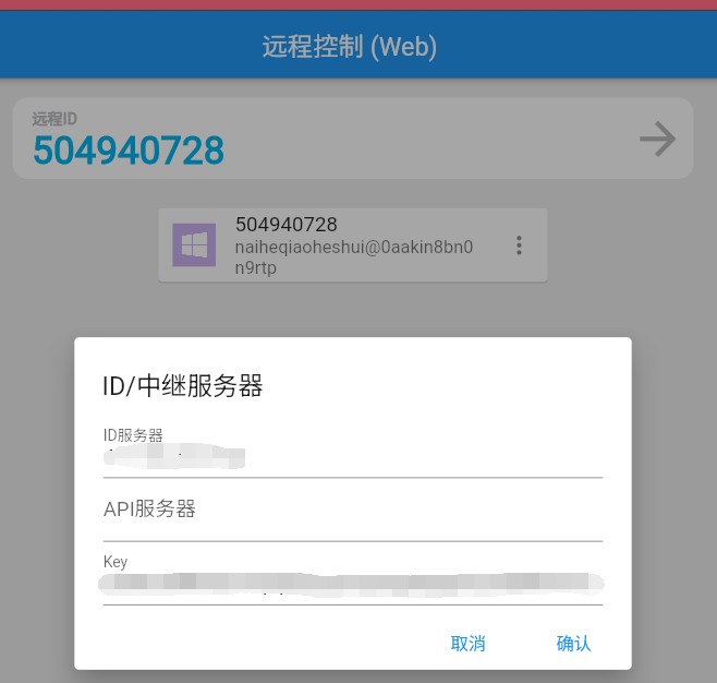 0x03:浏览器访问 Web 远控端,同样也要输入 ID服务器 和 Key。