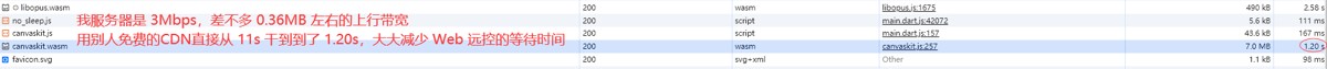 3.3:其它 客户端RustDesk 还支持 Linux(Debian系列没问题,虽然也提供了RadHat系列的rpm包,但好像有问题)、Mac、Android 等客户端,等有这方面的需求在搞。 4:部署优化4.1:Web 远控加载慢Web 远控慢是因为 canvaskit.wasm 太大了,足足 6MB 多,如果你服务器上行带宽很大,其实可以忽略。 优化:canvaskit.js 访问的 canvaskit.wasm,可以将访问地址换成网上免费的 插件CDN服务。