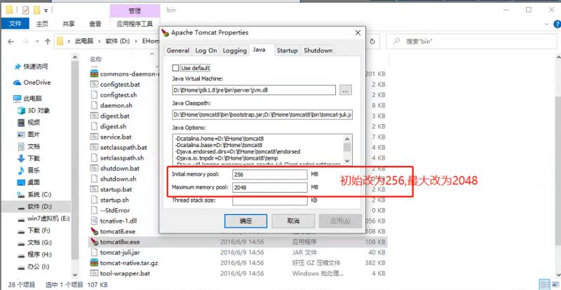 前两种方法针对的是bin目录下有catalina.bat的情况(比如直接解压的Tomcat等)并且通过startup.bat/startup.sh启动才生效,但是有些安装版的Tomcat下没有catalina.bat,这个时候可以采用如下方法,当然这个方法也是最通用的方法: 第三种方法:通过D:apache-tomcat-8.0.52-windows-x64apache-tomcat-8.0.52in omcat8w.exe,配置内存大小