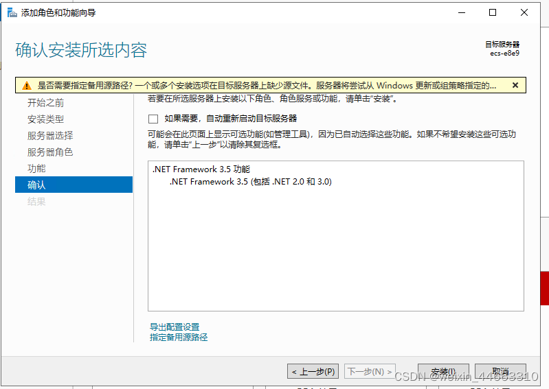 NET Framework3.5是Windows系统的托管代码编程模型,用于构建应用程序,可以实现无缝通信,NET Framework的组成部分包括Common Language Runtime、共享对象类别库,优势是提高应用程序的可扩展性和性能。 报错提示:请求添加或删除指定服务器上的功能失败。安装一个或多个角色,角色服务或功能失败。参数错误