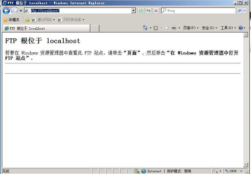 7、重启服务器(可选)由于涉及用户组的变更,可能需要重启后才能生效。建议重启服务器后再测试连接。 否则可能导致无法连接ftp服务器。 如果还连接不上,建议将ftp中的基本身份验证打开 8、连接验证a、本机浏览器验证