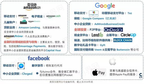 文/南七道 来源:创界网(ID:ChuangDaily) 中国的互联网巨头公司,无论是腾讯阿里百度(BAT),还是美团小米京东,都是金融产业的狂热追求者。在某种程度上说,他们就是一家巨型的金融公司。而反观美国的Google、Apple、Facebook、Amazon(GAFA),却很少涉足金融布局。两类公司的巨大反差,折射出的是中美的社会发展、金融化进程、国家政策、用户需求、隐私保护等各方面巨大的差异性。 一、中美互联网巨头们的金融差异 中美互联网巨头们在金融上的差异化,主要体现在两点上: 1.金融布局: ![]() BAT等中国互联网巨头在金融布局上特点是大而全,金融产业一条龙服务,从头吃到尾。包括支付、信用、保险、券商、个人小额贷款、理财等无孔不入。而Google等GAFA美国互联网巨头,则完全相反,主要是聚焦自身主业,金融更多是为了辅助主业更好的发展。他们主要的金融业务,是和银行合作,而非独立门户,“与已经拥有牌照和达成监管要求的银行结盟和合作。而不是与银行业面对面竞争。”只做金融机构服务的管道和补充。例如,Amazon将与银行合作推出支票帐户产品,Apple与高盛共同发行一张联名信用卡,这将有利于苹果抽取服务的手续费。 ![]() 全球最大的两家社交巨头,腾讯和Facebook的金融布局就很有代表性。以贷款业务为例,国内的互联网巨头,一般是申请银行或小贷牌照自营贷款业务,再就是给金融机构提供引流的助贷业务。腾讯财报显示,截至2017年年底,微众银行的无担保消费贷款业务“微粒贷”,管理的贷款余额逾人民币1000亿元。2018年财报虽未披露具体数据,但财报说“贷款余额实现迅速增长”,微粒贷是由腾讯旗下的微众银行运营网络贷款业务,服务对象包括个人、小型及微型企业客户。 而Facebook的贷款业务,只能用保守来形容。Facebook旗下的Chrged贷款业务,直接给中小企业,这笔钱只能用作支付给Facebook作为广告费用,也就是说贷款只会在商户和Facebook中间流动,但Facebook并不从中抽取手续费。 即使是最有条件做金融的Amazon,在金融方面也很克制。目前金融业务也仅仅包括指支付、电子现金和借贷。Amazon Pay可以在Amazon或者相关门店购物;用户通过Amazon Cash存入现金消费;Amazon Lending是针对卖家提供的贷款服务,针对个人发行了Prime会员信用卡。 2.金融营收 金融类的收入已经成为了BAT等中国互联网巨头主要支柱,而Facebook等巨头,金融收入占比几乎可以忽略不计。 2019年3月21日,腾讯披露了2018年业绩。全年总收入为3126.94亿人民币(455.61亿美元 )。截至2018年,包括金融科技与云服务等其他业务的收入,同比增长80%,至779.69亿元。其中云收入91亿,剩余688多亿的收入均来自于金融等产业。这个比例占了腾讯总收入的22%。金融科技服务收入商业交易手续率、提现费用及信用卡还款费用,金融机构金融科技产品服务费等。 同样作为社交媒体巨头,Facebook的收入一直主要来源于广告。2018 整年,Facebook 营收为 558.4 亿美元,同比增长 37%;利润为 221.1 亿美元,同比增长 39%。其中前9个月98.58%的收入来源于广告,仅有1.42%的收入,来源于支付及其他费用,大概5.51亿美金。而2017年实现的406.53亿美元收入中,广告收入为399.42亿美元,占比98.25%,支付及其他费用为7.11亿美元,占比1.75%。这笔支付收入并非其旗下Messenger的支付服务,它是完全免费的。而是利用其接口和技术的开发者费用。 二、为何中美巨头这么大差异 之所以中美巨头差异巨大,主要是和两个国家的金融发展历史、成熟程度完全不一样: 1.金融成熟及信用卡普及率差异: 众所周知,美国银行和金融产业高度发达。1838年,《自由银行法》的颁布,任何人只要有10万美金,就可开设银行。同时,美国银行业允许混业经营,既可办理信贷业务,又可从事投行、保险等多种业务。在1984年,美国银行总数,达到历史最高峰17901家,2008年次贷危机后,银行数量降幅加剧。2016年银行总数降至5913家,仅为1984年的三分之一。尽管如此,美国金融机构高度发达,充分竞争,也在各个领域有非常细分的分工。 而在中国,银行业主要是以四大行为主:中国工商银行、中国人民建设银行、中国银行、中国农业银行。各自有自己的侧重点,很多业务只能在指定的银行完成,如涉外信贷业务只能在中国银行办理。四大行均属于国有,并非完全市场化的银行。它们天然在政策上享有更多资源和优势,在竞争中具有得天独厚的优势,保障了相关营收,2018年中国最赚钱的商业机构里,前三分别是工商银行、建设银行、农业银行。利润都在2000亿左右。腾讯715亿,仅居第7。 这样的局面,银行机构很难有动力去和中国互联网的相关公司深度合作,也没有动力去服务普通散户。创新更是无从谈起。 虽然当下,中国的银行卡虽已逐步从工资和储蓄凭证,发展为居民日常消费支付的重要工具。但是相比美国,信用卡支付业务成熟相差甚远。2017年,《中国城市居民信用卡使用报告》显示,中国信用卡持卡人比例已达36.9%。也就是说,63.1%的人没有信用卡。2018年中国信用卡人均持卡量为0.44张,而2016年美国信用卡人均持卡量已达3.16张。信用卡成为了美国人消费最普及最喜爱的方式。 随着金融业的不成熟和管理现状,给了中国互联网公司在互联网金融上有了极大的发挥的创造空间。互联网、电商、手机等多种因素的发展,中国互联网金融因此迎来了历史性的爆发。 2.科技巨头与银行相爱相杀: 美国互联网巨头与